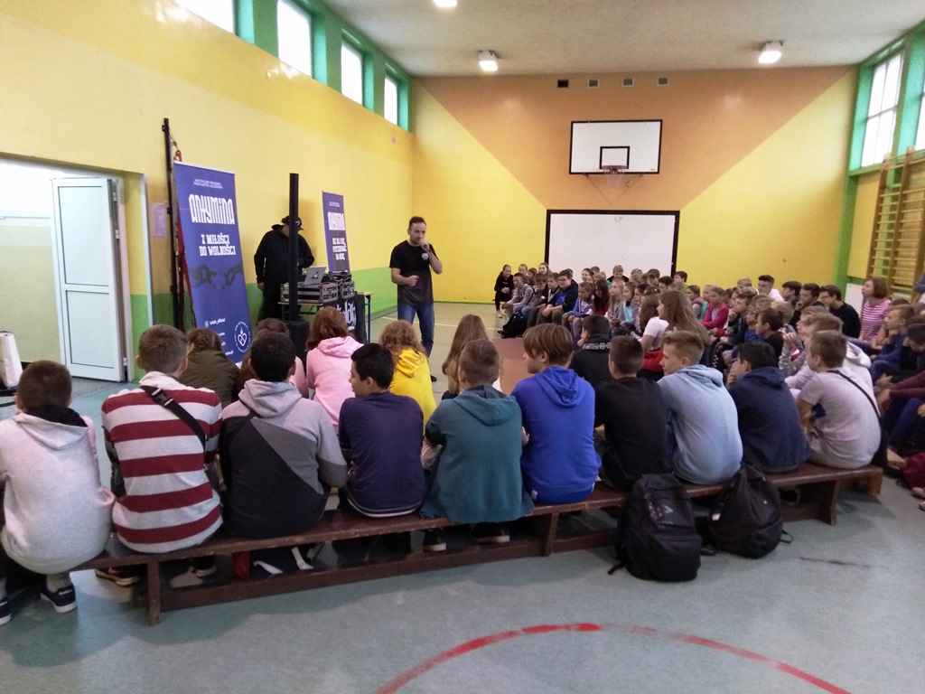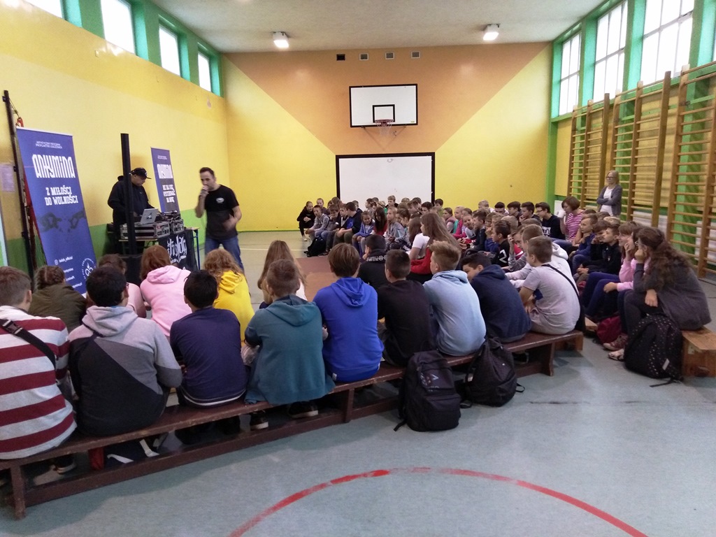 W dniu 24.10 br. uczniowie klas V-VIII wzięli udział w zajęciach profilaktycznych w ramach artystycznego projektu “Antymina. Nie daj się wysterować na minę”, którego celem jest zbudowanie wśród dzieci i młodzieży świadomości o zdrowotnych i społecznych konsekwencjach wynikających z używania substancji psychoaktywnych, alkoholu, uzależnienia od hazardu i e-uzależnienia.