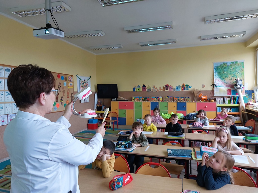 W listopadzie rozpoczęła się “Grupowa profilaktyka fluorkowa dla klas I-VI”. W tym roku szkolnym odbędzie się 6 aplikacji fluoryzacyjnych w odstępach minimum dwóch tygodni (1 raz w miesiącu). Do fluoryzacji używamy jednorazowych szczoteczek zakupionych ze środków przekazanych przez rodziców. Fluorek firmy ELMEX otrzymaliśmy w ramach NFZ.