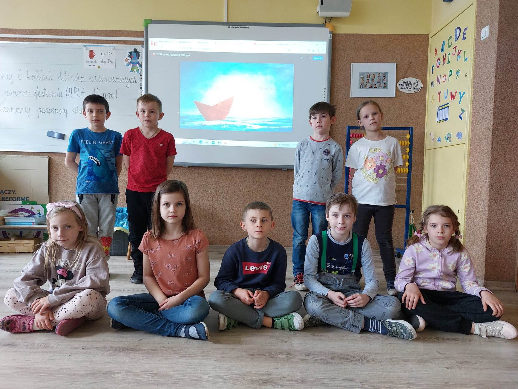 27 kwietnia uczniowie z klasy 1b zostali zaproszemi do roli jurorów w “Konkursie Teraz Dzieci Mają Głos” w kategorii dzieci wczesnoszkolnych w 11. Ogólnopolskim Festiwalu Animacji O!PLA. Po obejrzeniu kilku krótkich filmów animowanych w głosowaniu wybrali najlepszy z nich czyli “Czerwony papierowy stateczek”. Wielkie wrażenie zrobiło zarówno niespodziewane zakończenie filmu, przepiękna, kolorowa animacja oraz muzyka ilustrująca obraz. “Taka ładna i taka straszna czasami”- jak stwierdzili “mali jurorzy”. Wyniki zostały przesłane do organizatorów.