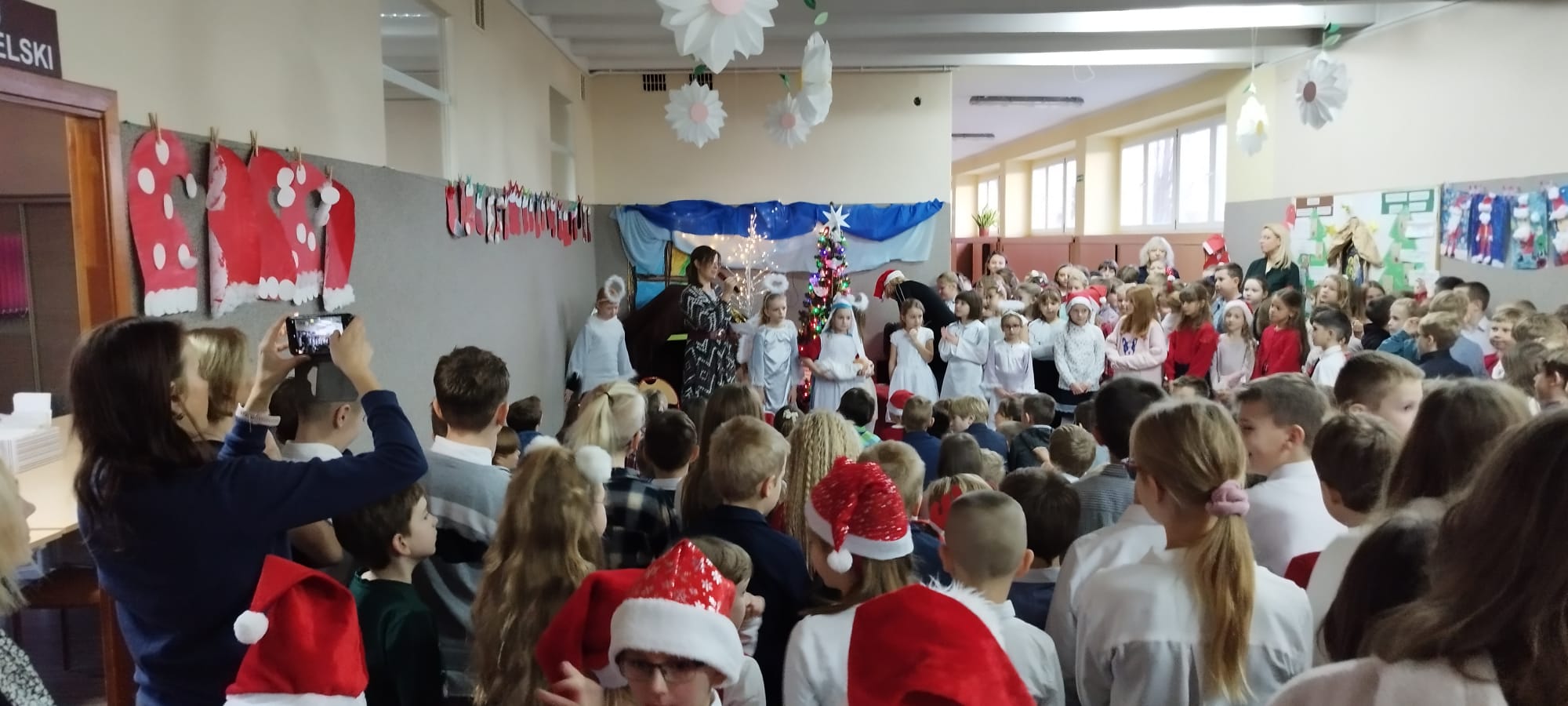 Jak kolędować to z radością i z przytupem. Wiedzą o tym nasi uczniowie, którzy wraz z wychowawcami zgromadzili się przy żłóbku i choince, by rozpocząć świąteczny czas Bożego Narodzenia. Towarzyszyli nam uczniowie z klasy 2d jako aniołowie oraz Maryja, Józef i Dzieciątko, które słuchając naszego śpiewu, nie miało szans słodko spać 😉