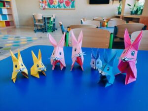 ŚWIĘTA JUŻ BLISKO 15 kwietnia, 2025Małgorzata Budzińska Zbliżają się Święta Wielkiej Nocy, a naszym najmłodszym kojarzą się z barankiem, zajączkiem i pisankami. Dekorujemy salę .