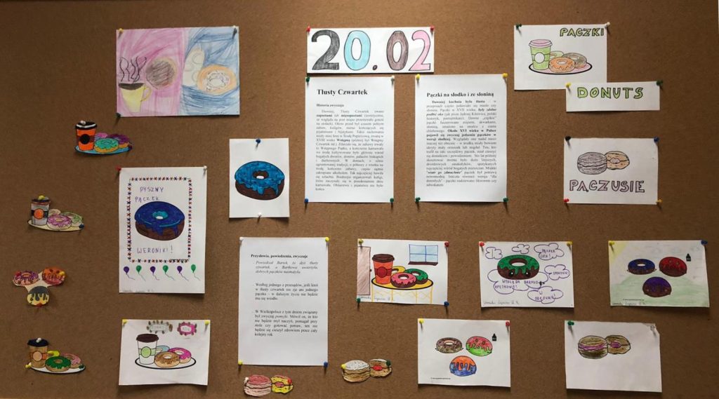 Z okazji tłustego czwartku uczniowie SP 79 przebywający w świetlicy szkolnej przygotowali gazetkę tematyczną.