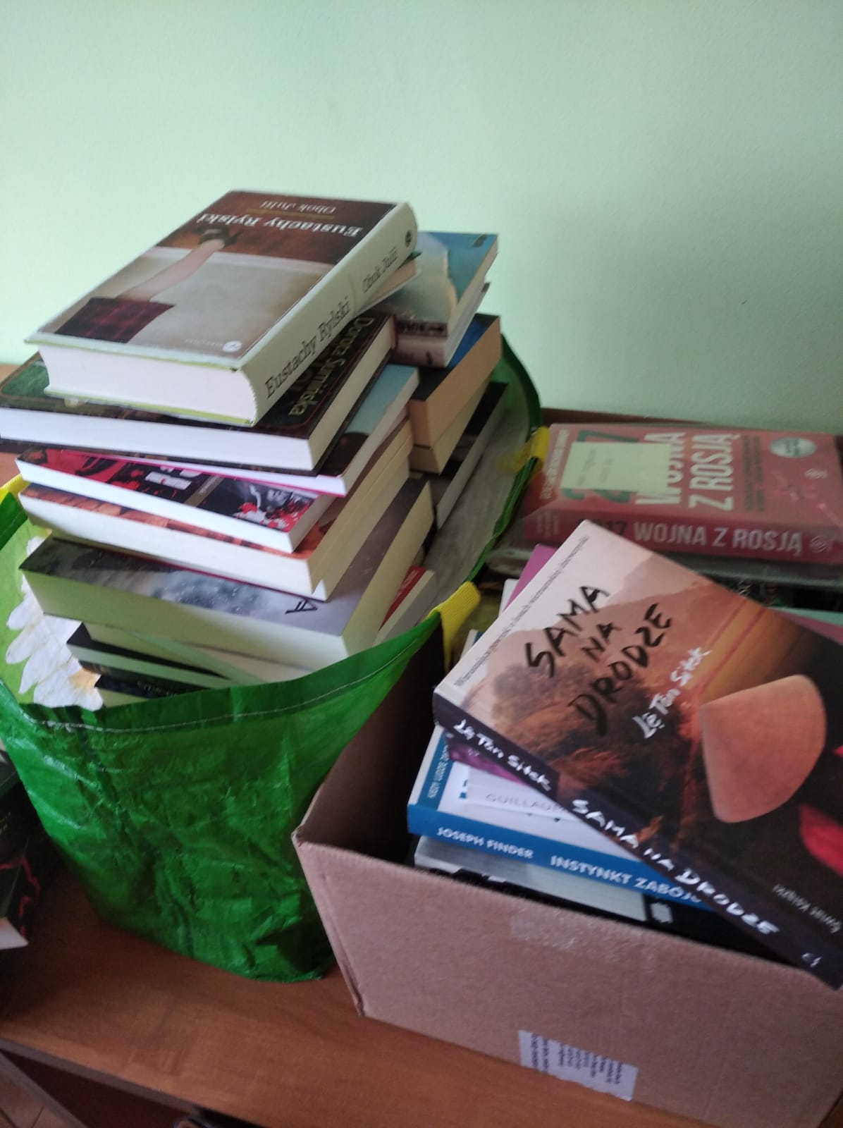 Dzięki Waszej hojności – Drodzy Uczniowie oraz Koleżanki udało nam się zebrać w sumie 136 książek dla dorosłych i 180 dla dzieci. Książki, po kwarantannie, zapakowane w 8 dużych kartonów odwieziono już do punktu zbiórki na dworcu PKP.
