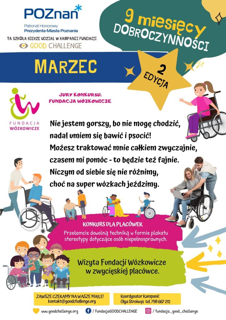 W marcu bierzemy udział w akcji we współpracy z poznańską Fundacją Wózkowicze, która działa na rzecz osób poruszających się na wózkach inwalidzkich: