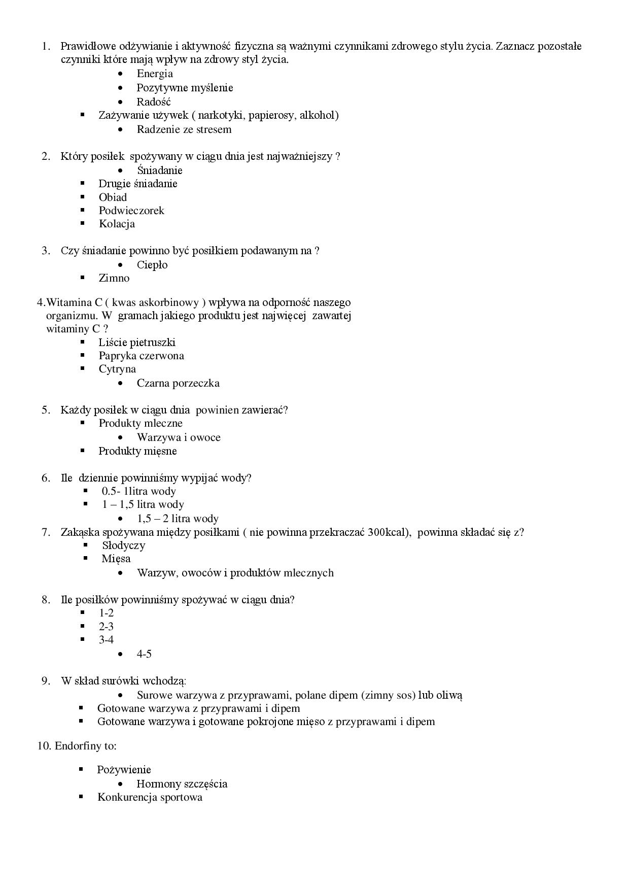 Poniżej przedstawiam pytania na jakie odpowiadali uczniowie z prawidłowymi odpowiedziami, zaznaczonymi czarnym kółeczkiem.