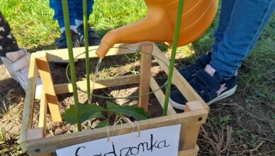 W ostatnich dniach września uczniowie z klasy 3b posadzili drzewko dębu na zielonym placu przed szkołą. A wszystko zaczęło się od Nadii, która w czerwcu