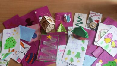 Wolontariusze z naszej szkoły włączyli się w akcje przygotowania kartek świątecznych, które zostaną podarowane dla potrzebujących w czasie Wigilii na MTP.