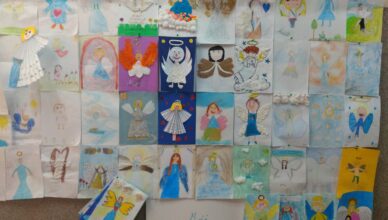 Bardzo dziękuję, wszystkim dzieciom, które uruchomiły wyobraźnię i wykonały ilustracje przedstawiające Anioła Stróża. Wśród namalowanych postaci można znaleźć anioły: rozśpiewane, zatroskane, królewskie, zamyślone,